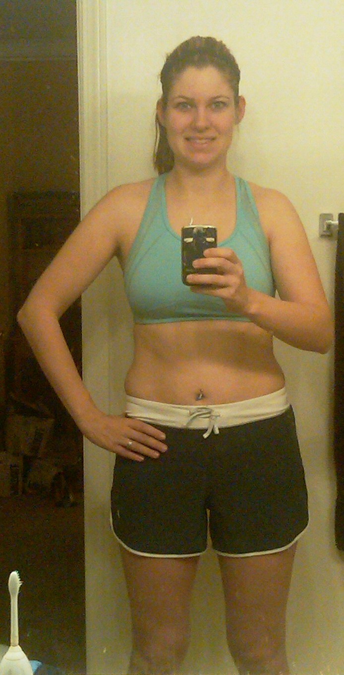 | After - 150 and an inch off my waist and hips. Felt better about my abs and the little side "bulges" too |
